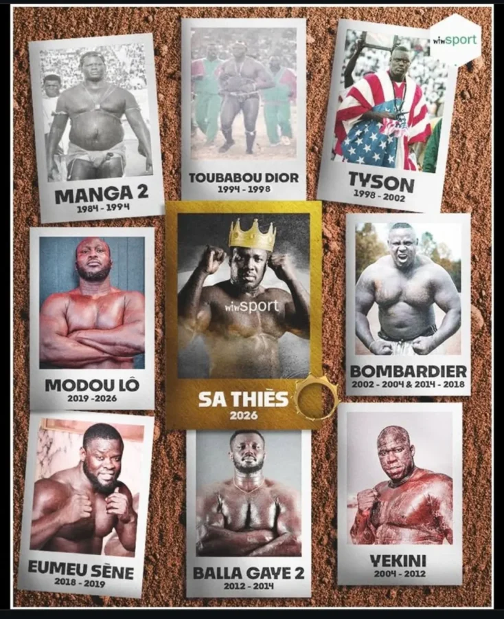 Selon les données historiques retracées par Le Soleil Sports, Sa Thiès s’est imposé face à Modou Lô le 5 avril 2026. Par cette victoire, le lutteur de 35 ans, qui affichait avant ce combat un bilan de 16 succès pour 3 défaites, devient officiellement le 9e Roi des arènes.