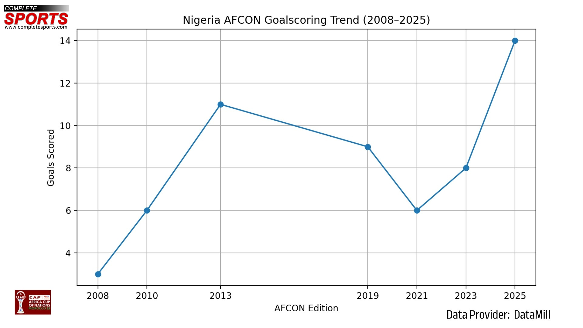 Loin de l’image d’une équipe misant uniquement sur le spectacle, le Nigeria a construit sa campagne marocaine sur une autorité chiffrée. Selon les données compilées par notre confrère *Complete Sports*, la sélection a atteint un total de 14 buts inscrits lors de cette édition 2025. Ce chiffre représente le total le plus élevé sur les sept dernières éditions analysées, surpassant même le pic de 11 réalisations atteint lors du sacre continental de 2013.