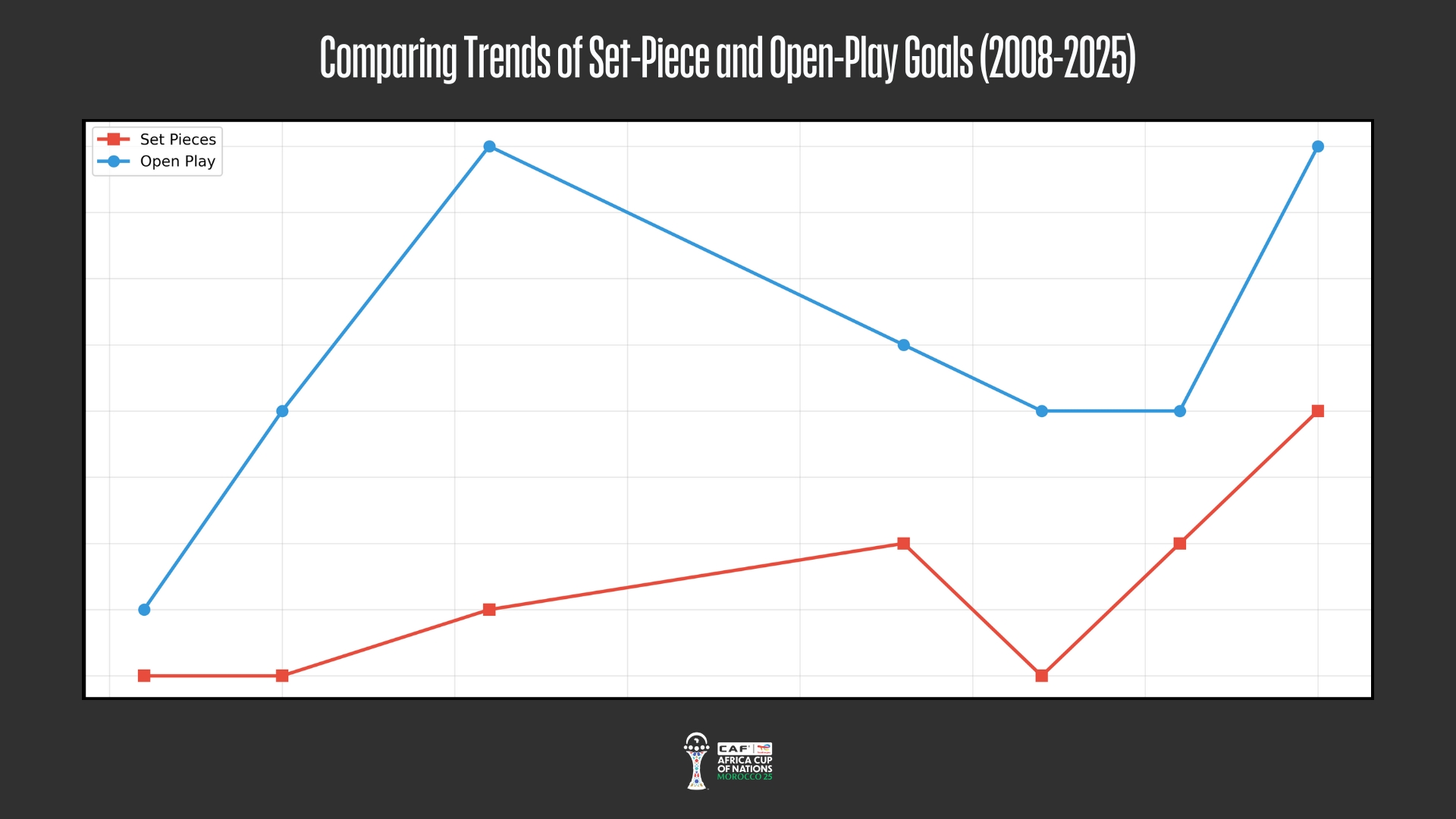 L’évolution tactique du Nigeria se lit aussi dans la diversification des sources de danger. Si le jeu ouvert reste prépondérant, l’édition 2025 a marqué une explosion de l’efficacité sur coups de pied arrêtés, et spécifiquement sur les remises en jeu. Trois buts ont été inscrits suite à des séquences de touches, contre un seul sur l’ensemble des éditions précédentes. Le but de Paul Onuachu contre l’Ouganda, marqué dix secondes après une touche, illustre cette nouvelle arme.