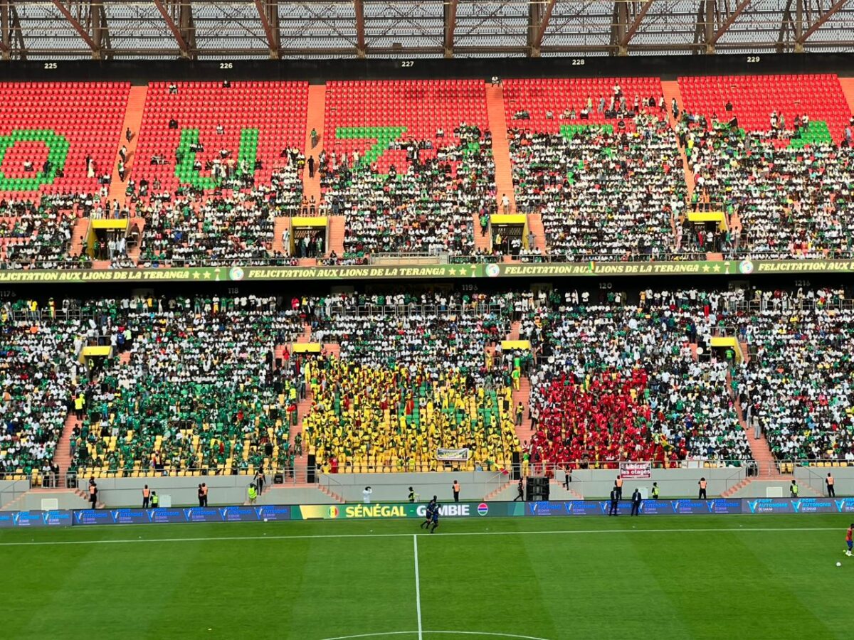 À quelques instants du coup d’envoi de la rencontre opposant le Sénégal à la Gambie, le stade Abdoulaye Wade de Diamniadio fait le plein. L’enceinte sportive se remplit rapidement, plongeant les tribunes dans une atmosphère particulièrement électrique pour pousser les Lions.